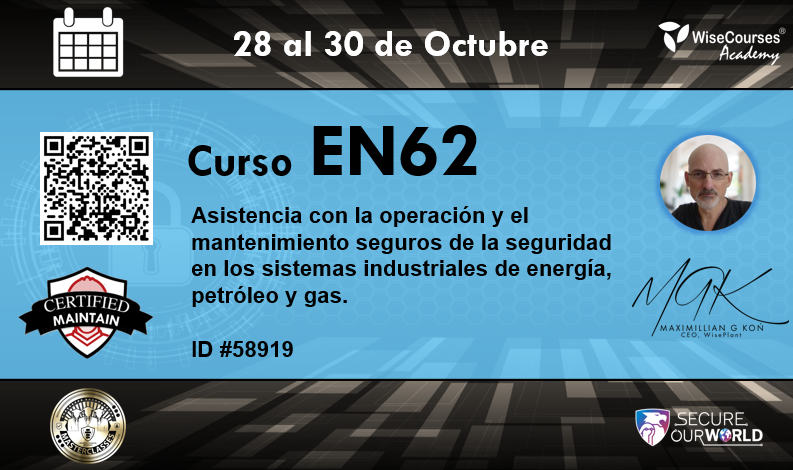 EN62: Asistencia a la operación segura y mantenimiento de la seguridad en sistemas industriales en energía, petróleo y gas. (ID#58919)